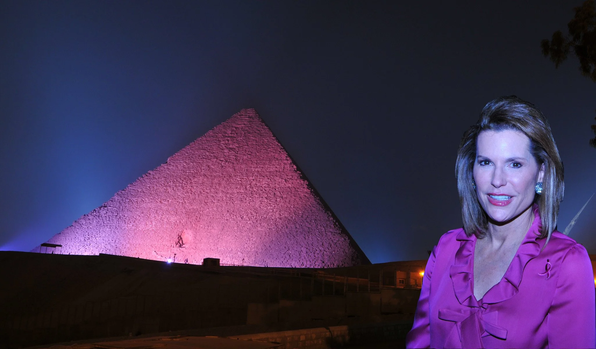2009 Oct 3 Written By Jeffrey Yan The Pyramids of Giza are lit pink during the first Komen Egypt Race — a global message of awareness. Jeffrey Yan